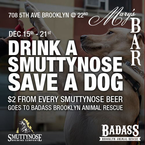 What better excuse is there to cozy up in Mary’s Bar in South Slope then to support Badass Brooklyn Animal Rescue? Smuttynose Brewery is kindly donating $2 of every beer purchase to the animal rescue until Saturday December 21st. A pint of Smuttynose will run you $6 each. Mary’s Bar is located in South Slope (708 5th Avenue and 22nd Street). The bar has a great vibe, with pool tables, darts, and live music. So bring your friends for a pint (or a few) and support the organization! Also, make sure you check out the Badass Brooklyn Animal Rescue website for available pets, volunteer opportunities, and upcoming events. http://www.badassbrooklynanimalrescue.com/new-events/